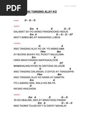 Share download and print ang tanging alay ko by Papuri Singer free sheet music with the worlds largest community of sheet music creators composers performers music teachers students beginners artists and other musicians with over 1500000 digital sheet music to play practice learn and enjoy. G A Ang tanging alay ko sayo aking Ama Fm Bm Ang buong buhay ko pusot kaluluwa Em A Di na makaya na makapagkaloob D Mamahaling hiyas ni. Search inside document.